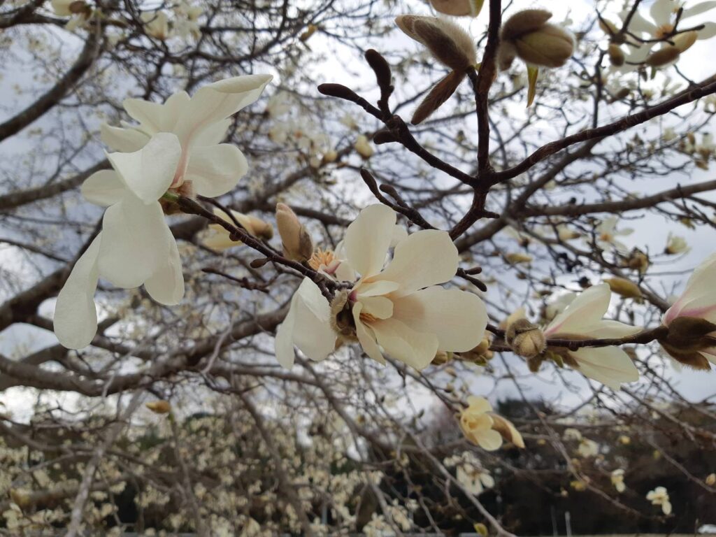 モクレンの仲間で庭木として栽培されるハクモクレンよりも花が小さく