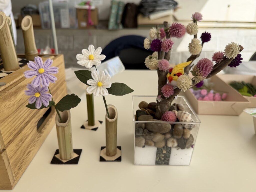 ちりめん細工で作るお花のワークショップはお客様が途切れることなく大人気!