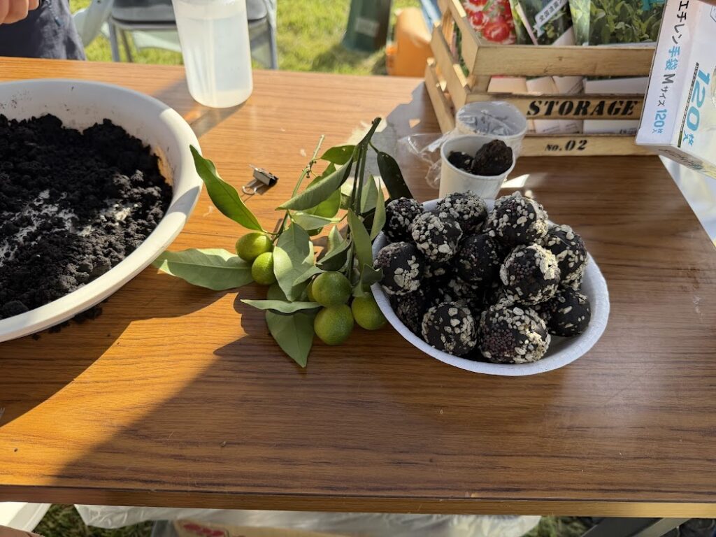 ふれあいガーデンづくりの一環として、種だんご作りも行いました!